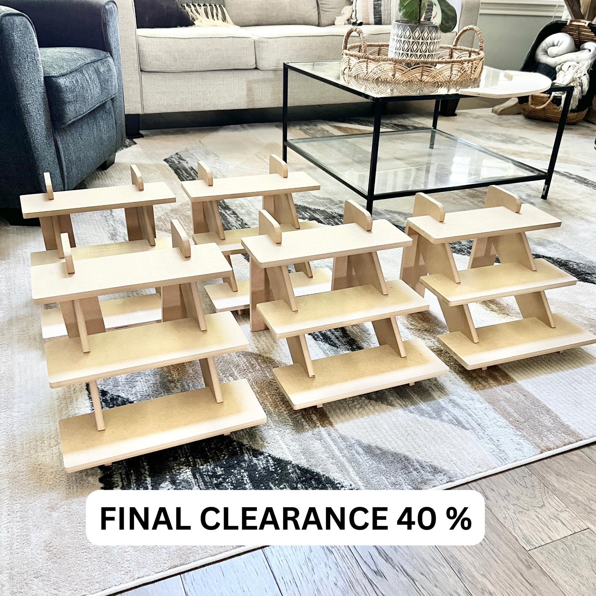 FINAL CLOSEOUT on these 3-tier displays that have our previous 4.5" shelf size and 3.5" spacing.