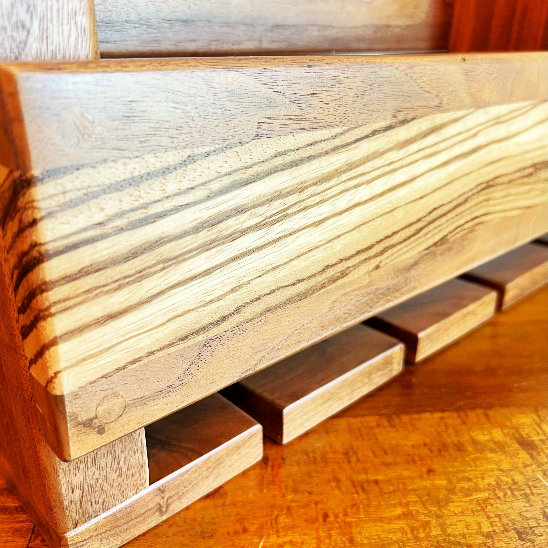 Handcrafted from walnut and trimmed with either Zebra or Padauk exotic wood accents.