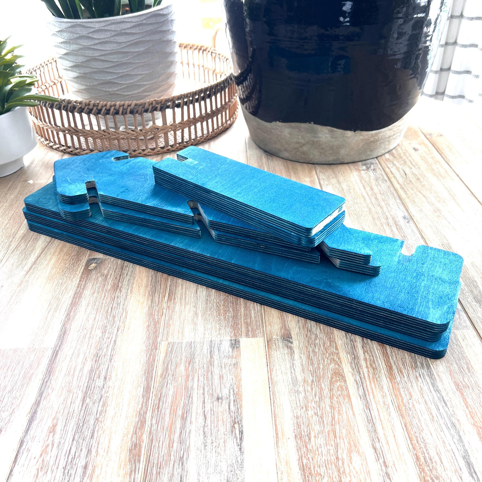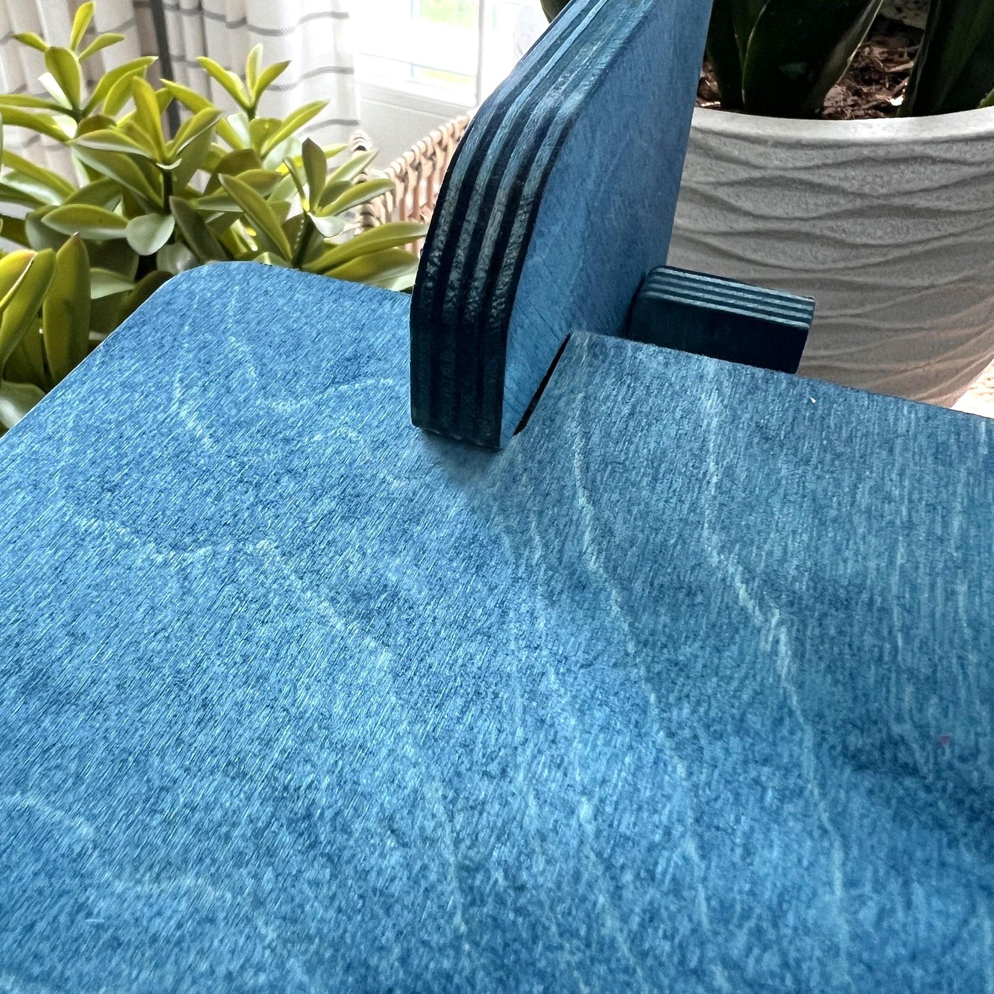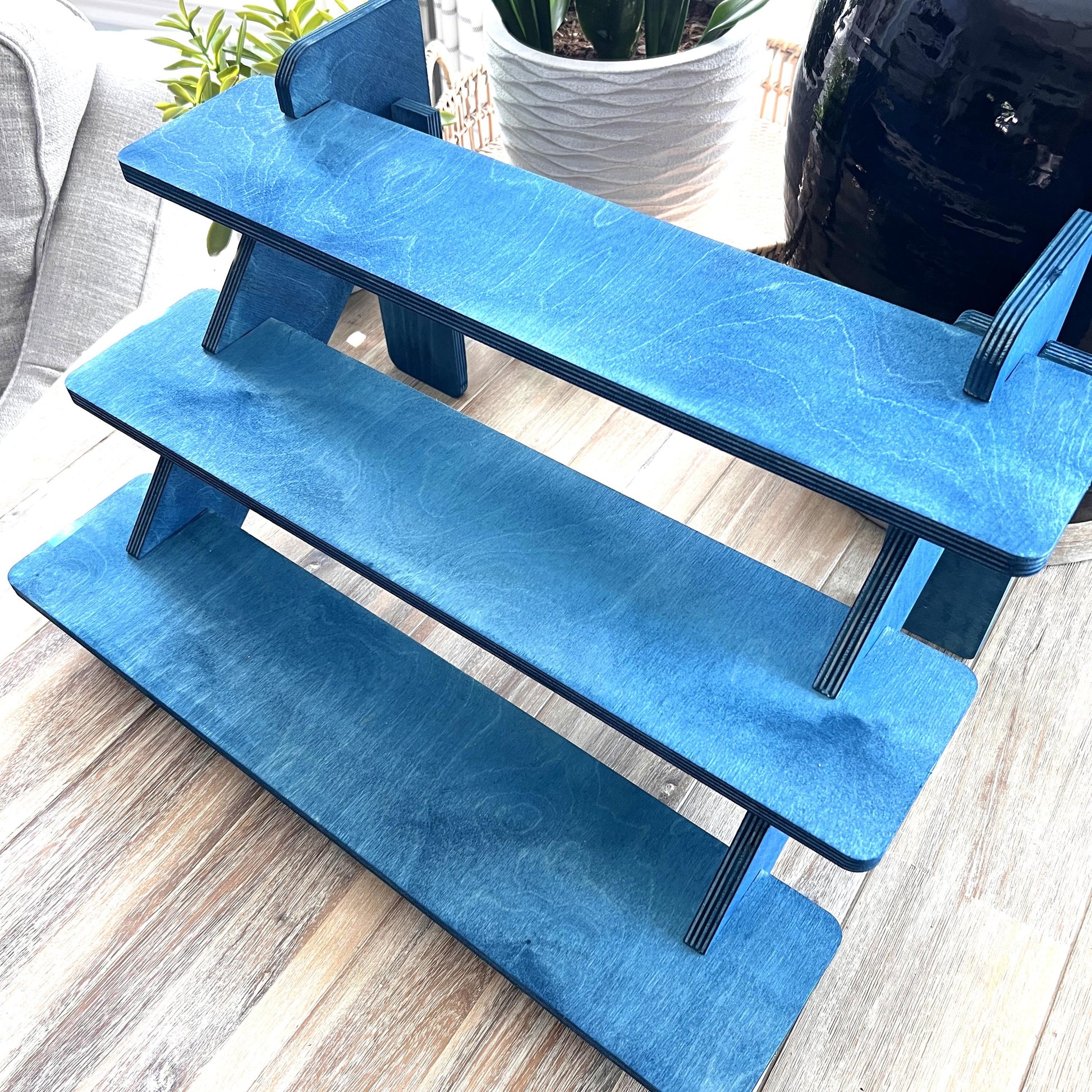 Blue 3-Tier Wood Display Stand: Collapsible Craft Fair Product Riser