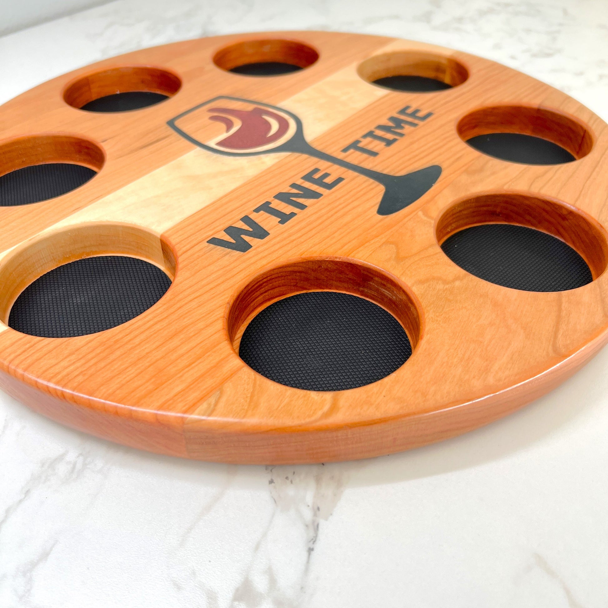 Created from solid cherry with a maple accent and features non-skid lining to keep drinks in place as they are brought to the table. Price includes engraving and epoxy filling.