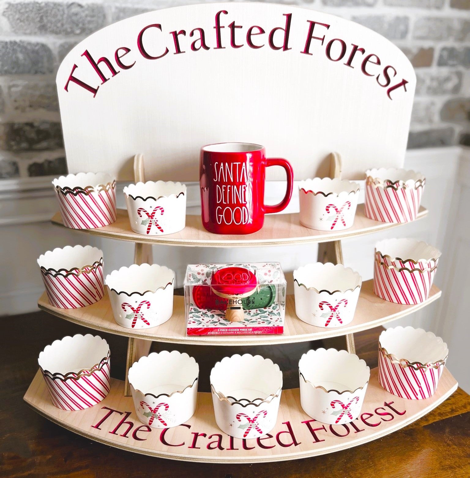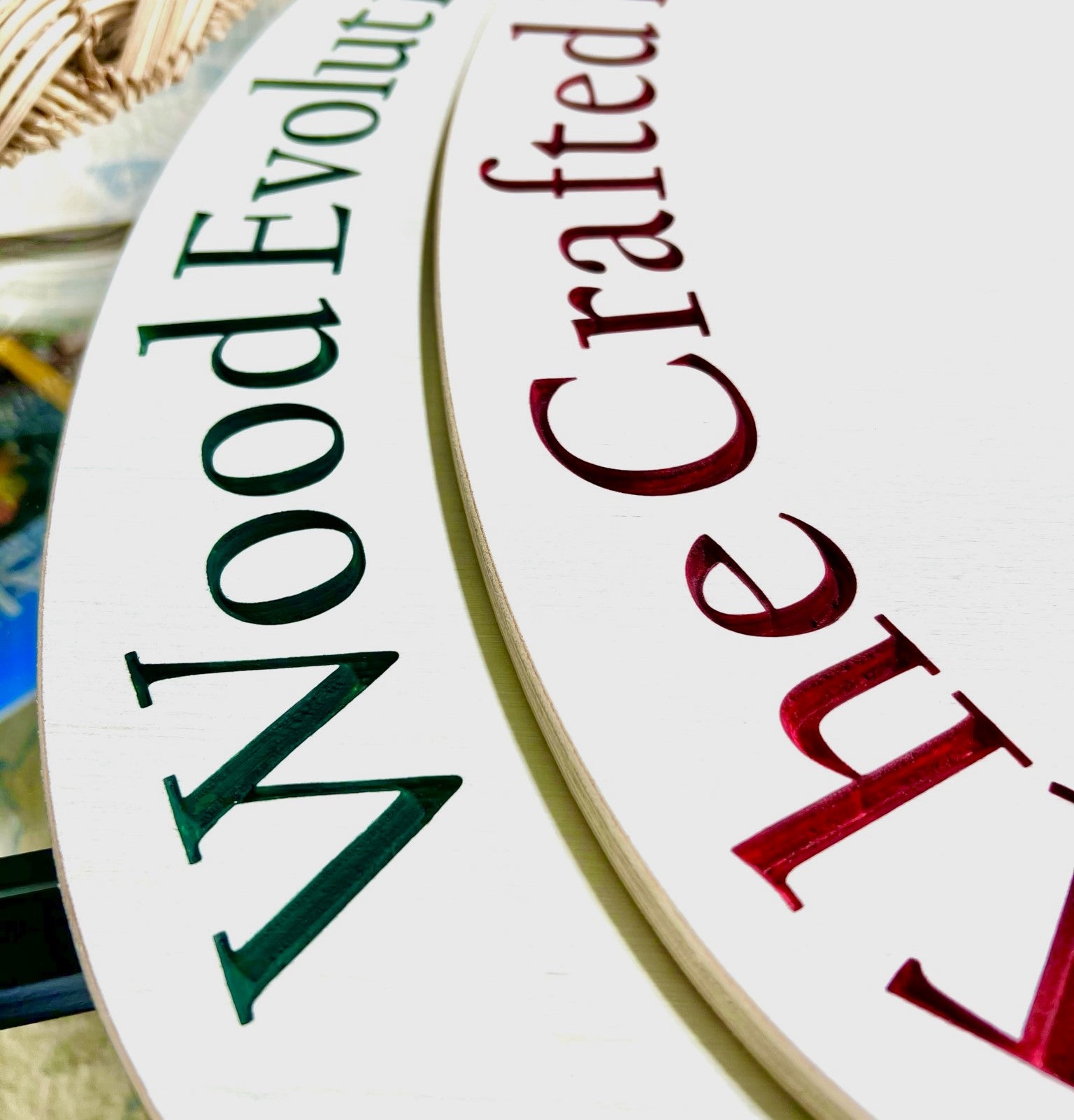 Signage will be created with notches at the bottom so that they join together with the risers of our display stands.