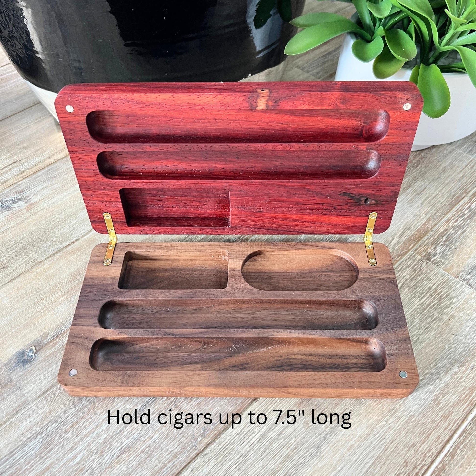 Dimensions: L 9.5" x W 5" and 1.5" H Holds cigars up to 7.5" long