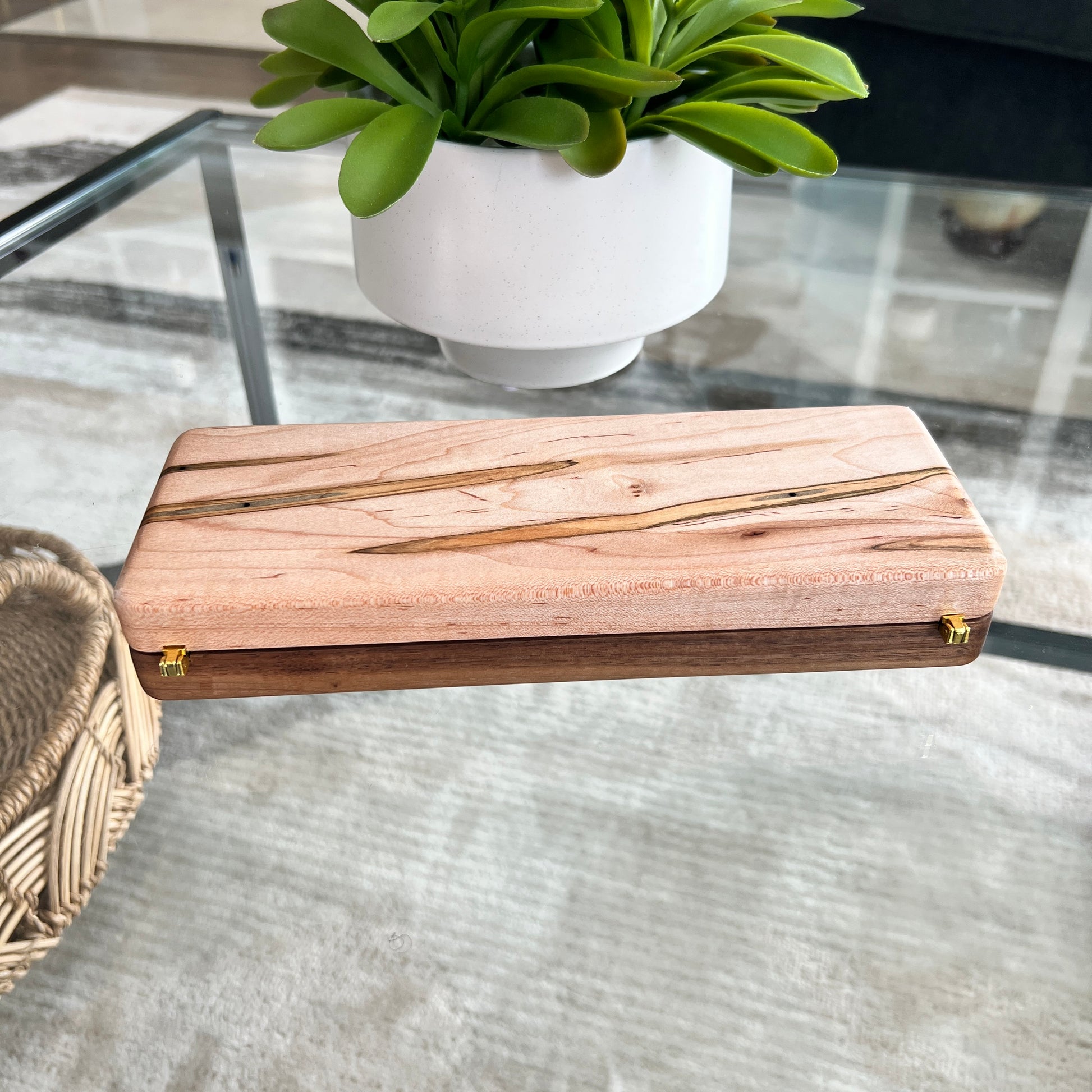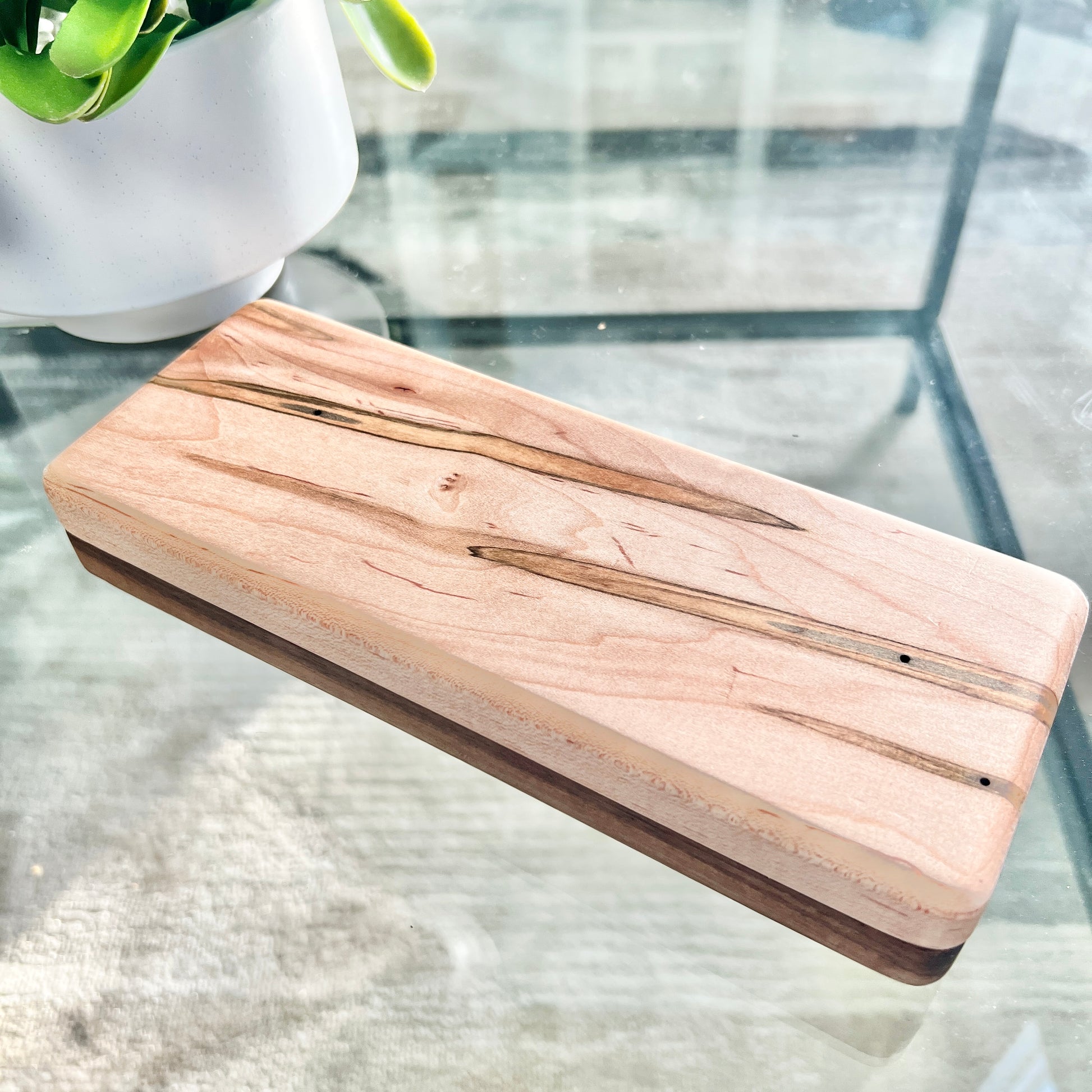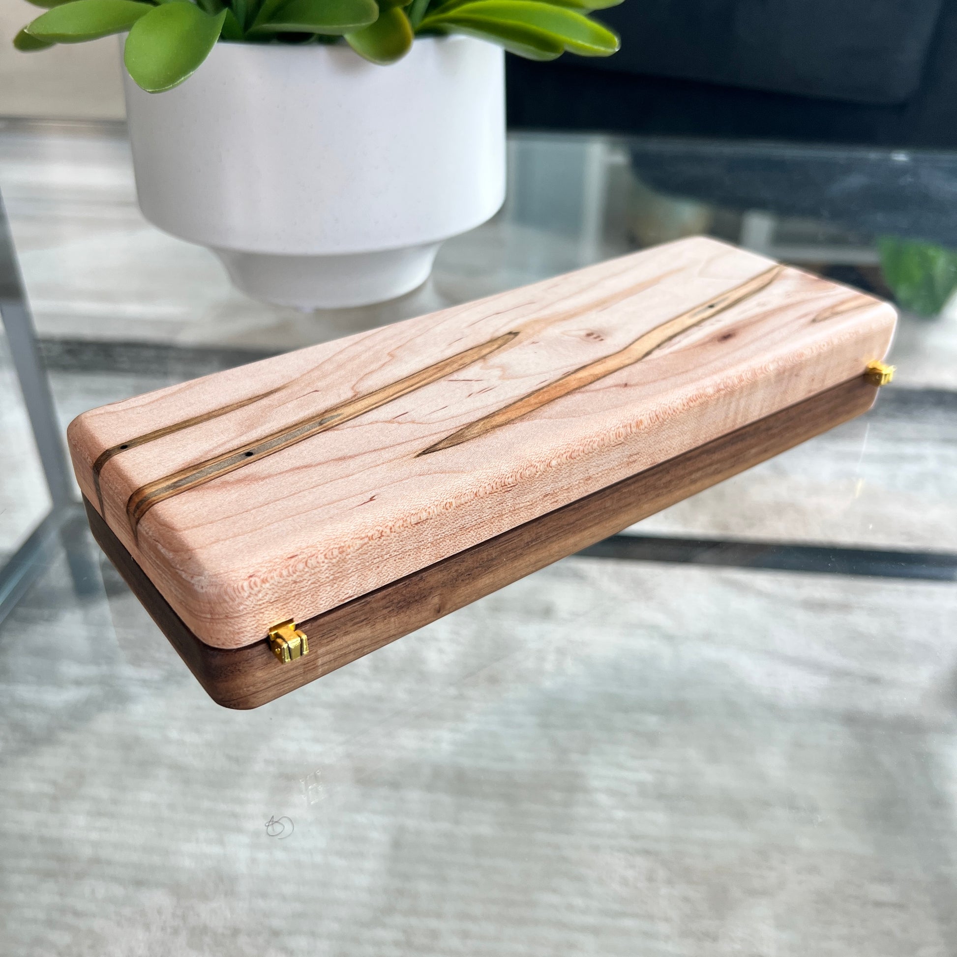 A one of a kind cigar case created with Ambrosia Maple. Each cut of wood reveals uniquely spectacular grain differences.