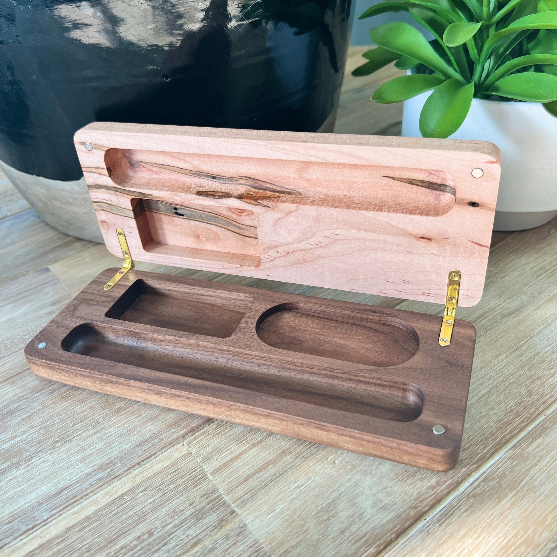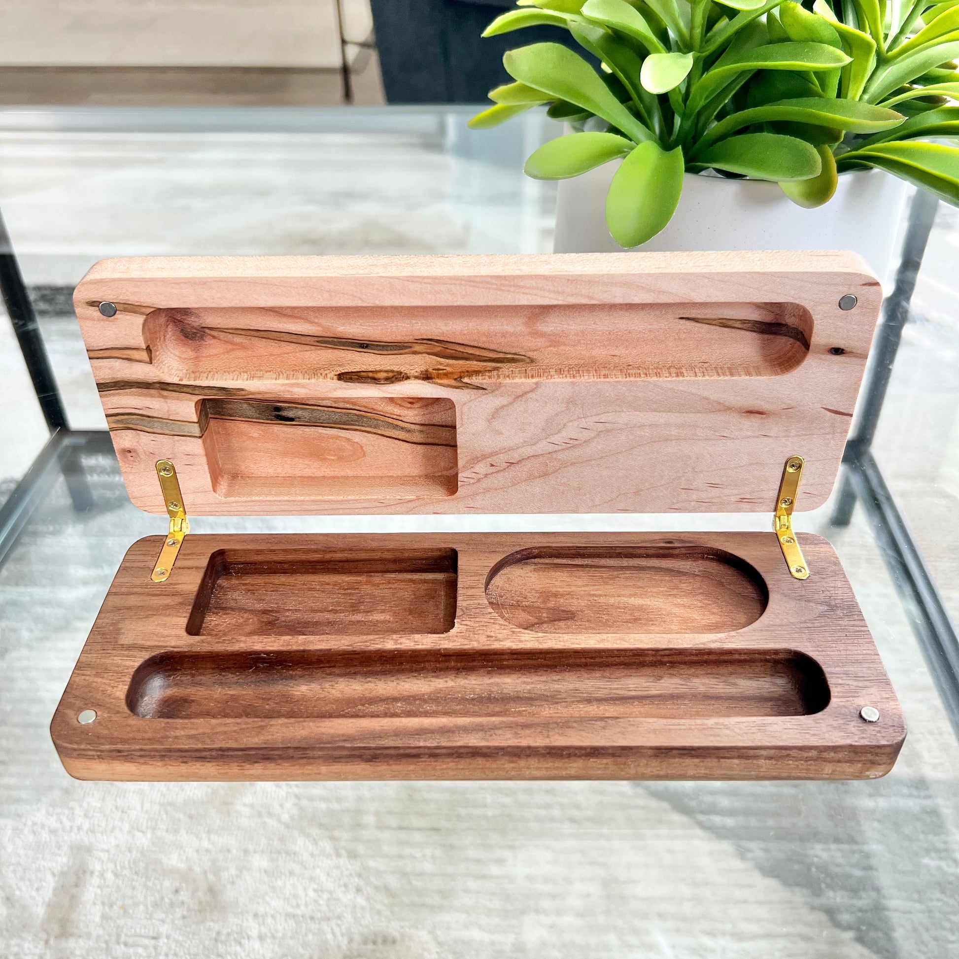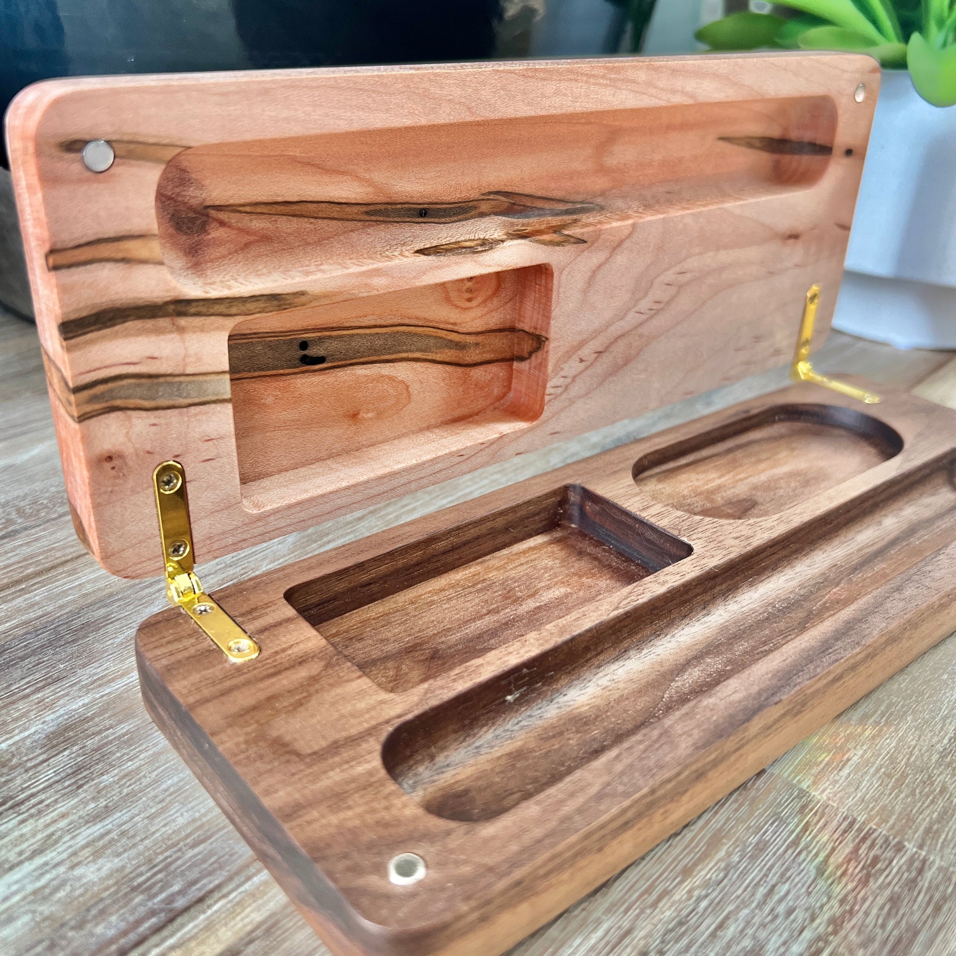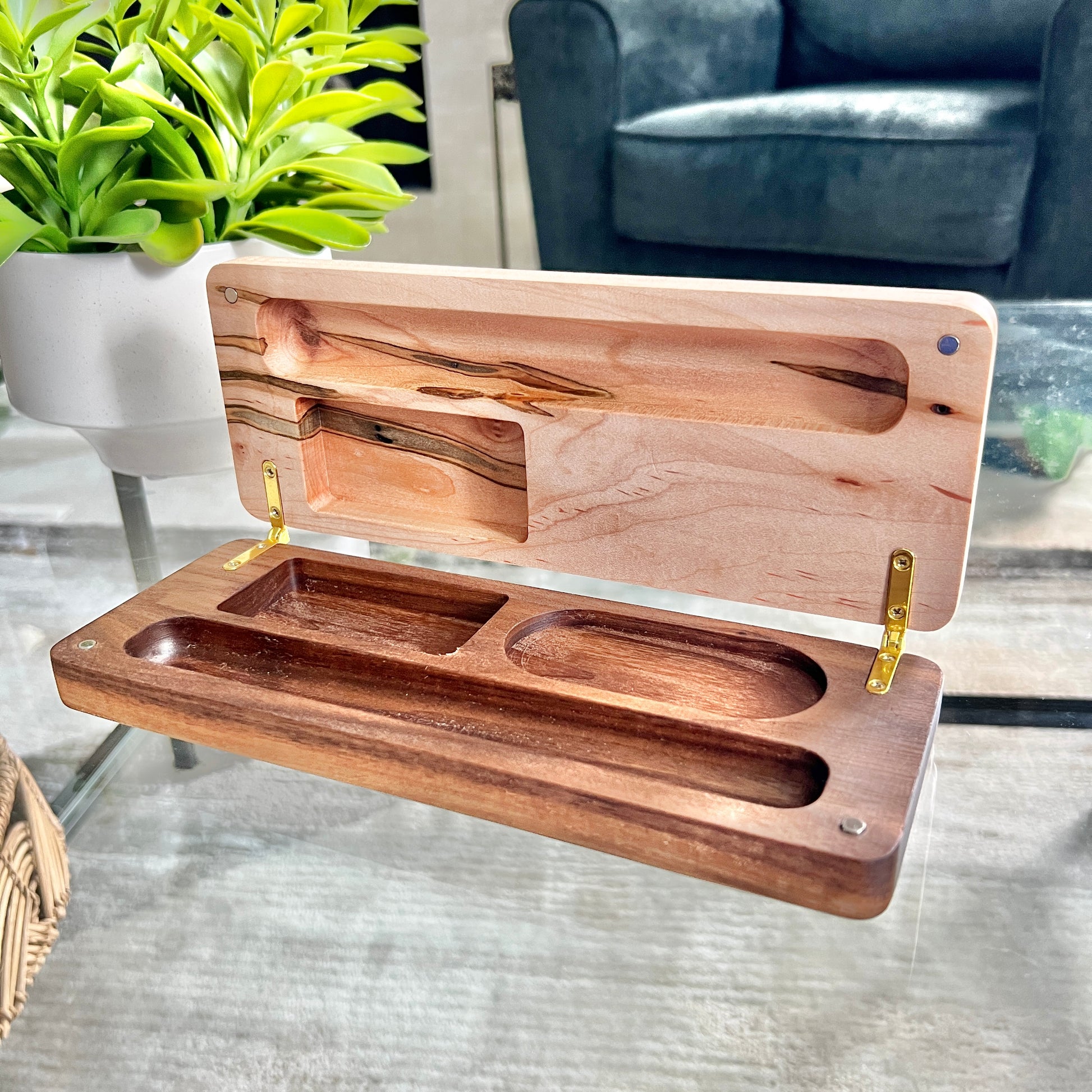A one of a kind cigar case created with Ambrosia Maple. Each cut of wood reveals uniquely spectacular grain differences.